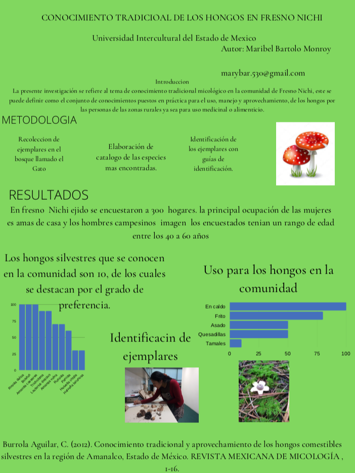 En la identificación realizada a qué le dieron mayor importancia, a la experiencia de las personas que recolectaron o el uso de guías o método de quienes realizaron el estudio, ya que se quería evaluar el conocimiento de identificación y uso de hongos comestibles de la comunidad